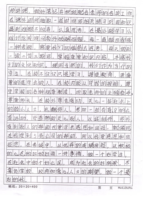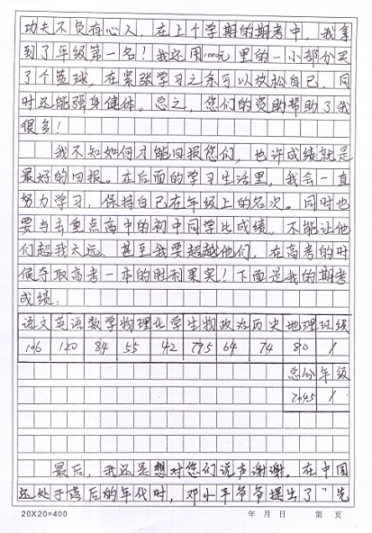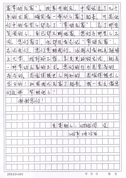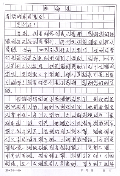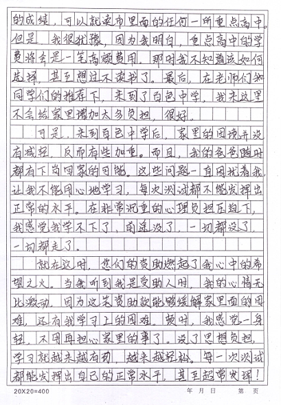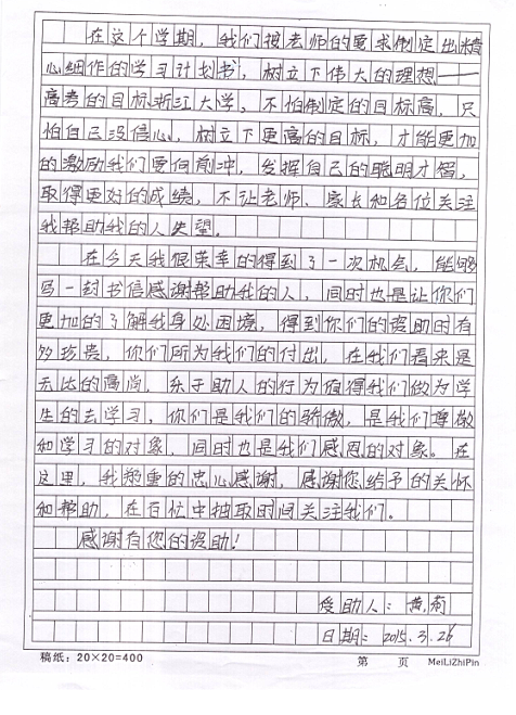 百色中學(xué)特困班受助學(xué)生寫來的感謝信