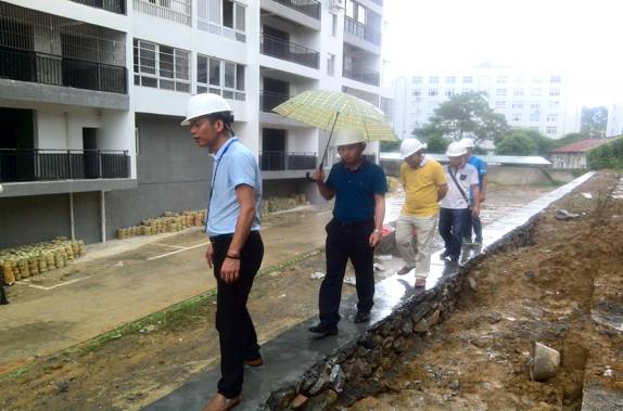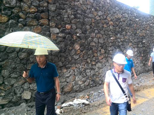 鄧董事長(zhǎng)在察看擋土墻建設(shè)情況