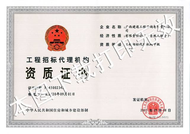 在集團(tuán)、公司領(lǐng)導(dǎo)的關(guān)心、支持以及品牌公司資質(zhì)申報(bào)全體人員的共同努力下,我集團(tuán)旗下子公司廣西建通工程咨詢有限責(zé)任公司于2015年9月8日成功取得由中華人民共和國(guó)住房和城鄉(xiāng)建設(shè)部頒發(fā)的工程招標(biāo)代理機(jī)構(gòu)甲級(jí)資質(zhì)證書(shū)延續(xù)。廣西建通工程咨詢有限責(zé)任公司擁有一支技術(shù)能力強(qiáng)、專業(yè)程度高的招標(biāo)代理人才隊(duì)伍,致力于為業(yè)主提供優(yōu)質(zhì)的招標(biāo)代理服務(wù),公司的招標(biāo)業(yè)務(wù)涉及房建、市政、橋梁、水利、公路等多個(gè)領(lǐng)域,囊括土木工程、建筑工程、線路管道和設(shè)備安裝工程及裝飾裝修工程的勘察、設(shè)計(jì)、施工、監(jiān)理以及與工程建設(shè)有關(guān)的重要設(shè)備、材料采購(gòu)招標(biāo)的代理業(yè)務(wù),此次工程招標(biāo)代理甲級(jí)資質(zhì)延續(xù)的取得為公司招標(biāo)代理業(yè)務(wù)的拓展提供了更廣闊的空間,為公司從區(qū)域公司轉(zhuǎn)型為全國(guó)性公司奠定了堅(jiān)實(shí)的基礎(chǔ)。公司將珍惜榮譽(yù),為實(shí)現(xiàn)集團(tuán)全國(guó)品牌發(fā)展戰(zhàn)略保駕護(hù)航!