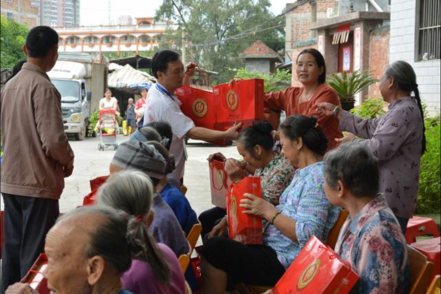 圖三:建通愛心小分隊(duì)將月餅送到老人們手中