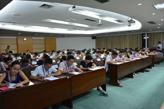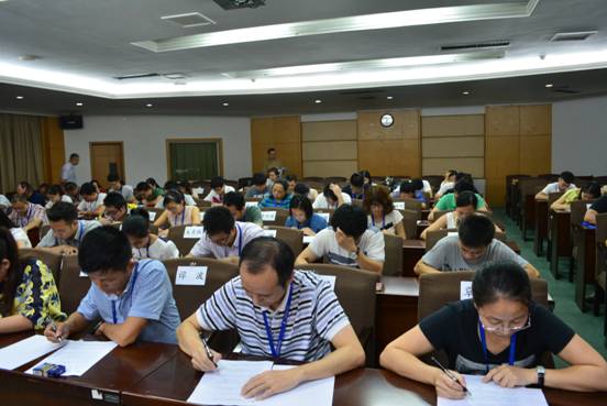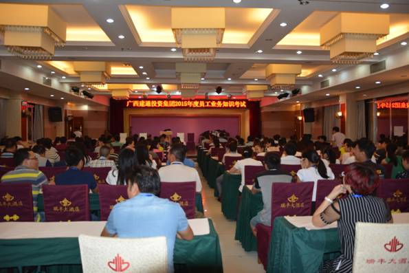 本次考試集團領(lǐng)導(dǎo)高度重視,由所有題目均由集團董事長親自修撰,并于考前一天密封分別送到百色總部及南寧總部。經(jīng)過學(xué)習(xí)備戰(zhàn)及充分的準(zhǔn)備,9月29日晚上七點半集團百色考場和南寧考場同時開考,兩個考場均分別請來了幾位特殊的監(jiān)考員,他們都不是集團員工,嚴(yán)格的考場紀(jì)律有利于員工們更好地發(fā)揮。在考場里,集團百色總部、南寧總部全體員工終于迎來的這一激動人心的時刻。6點鐘下班后,不少員工早已按耐不住內(nèi)心的熱情,早早的到達(dá)考場,找到自己的位置后,便開始爭分奪秒的認(rèn)真復(fù)習(xí)起來。時間一分一秒的過去,員工們也陸陸續(xù)續(xù)的來到了考場,對業(yè)務(wù)知識掌握較為熟練的員工則靜靜的在考場上調(diào)整好心態(tài)等待考試,雖然還沒有到考試時間,但考場早已如同考試中一般的安靜。隨著考試鈴聲的敲響,南寧總部在集團第二綜合辦公室主任熊莎莎經(jīng)理和監(jiān)考老師的主持下,百色總部在集團第五綜合辦主任徐 青的和監(jiān)考老師的主持下,佩戴好工牌靜靜的坐在自己的位置上等待老師下發(fā)試卷。在考試的過程中,每位員工嚴(yán)格要求自己,遵守考場紀(jì)律,都能在規(guī)定的時間內(nèi)完成所有的答卷。表面似風(fēng)平浪靜,實際如驚濤駭浪。經(jīng)過長達(dá)1個小時的奮戰(zhàn),終于順利地結(jié)束了2015年員工業(yè)務(wù)能力知識的考試,在監(jiān)考老師的嚴(yán)格監(jiān)督下,考場紀(jì)律井然有序,未發(fā)現(xiàn)有作弊現(xiàn)象,所有考員均有序的離開了考場。離開考場后,大家三三倆倆地聚集在一起,紛紛發(fā)表對考題的看法,對計算題過程結(jié)果進行討論,那激動熱切的場面如同高考結(jié)束般的放松。