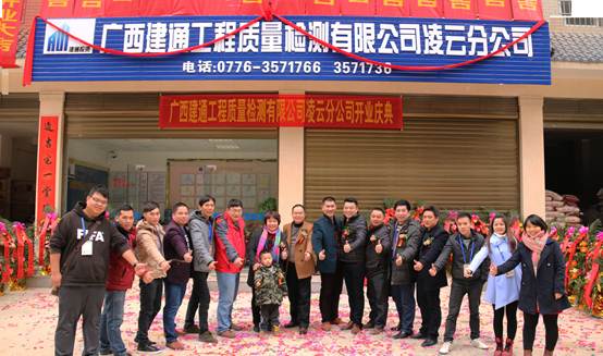 2016年1月27日下午4點18分,在燦爛的陽光下,伴著喜慶的禮炮聲,集團副總裁黃承理及廣西建通工程質(zhì)量檢測有限公司總經(jīng)理陸虹任為代表的集團高層領(lǐng)導(dǎo)共同為檢測凌云分公司開業(yè)揭牌并宣布廣西建通工程質(zhì)量檢測有限公司凌云分公司正式開業(yè)!到場嘉賓紛紛為凌云分公司的開業(yè)致以了真誠的祝福。