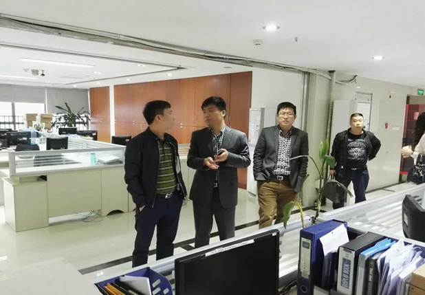 圖一:千福田梁宇董事長(zhǎng)、伍海生總經(jīng)理陪同鄧安杰董事長(zhǎng)參觀了千福田公司的辦公環(huán)境