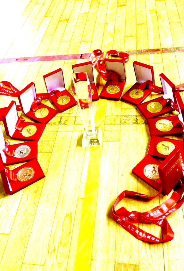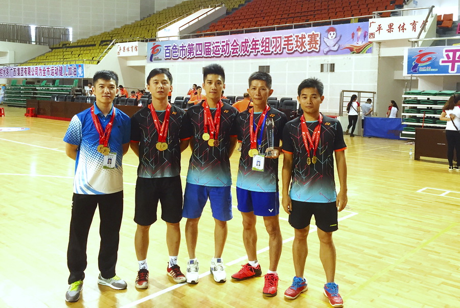 百色市第四屆市運(yùn)會于5月18日-5月22日在平果縣體育中心揭開戰(zhàn)幕,集團(tuán)派出以集團(tuán)副董事長黃樹威、集團(tuán)總裁助理譚波領(lǐng)銜的7名隊(duì)員參加了為期四天的羽毛球賽,集團(tuán)健兒們沉著應(yīng)戰(zhàn),不畏強(qiáng)手,賽出風(fēng)格,賽出水平,成功衛(wèi)冕含金量最重的男子團(tuán)體冠軍,男雙單項(xiàng)冠軍,并首奪男單冠軍,一共斬獲三金二銅的好成績,集團(tuán)代表團(tuán)成為本屆百色市運(yùn)會羽毛球項(xiàng)目最大的贏家!