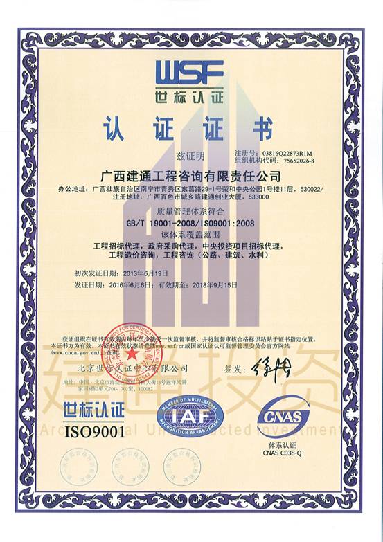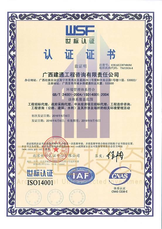 廣西建通工程咨詢有限責(zé)任公司三大體系認(rèn)證證書