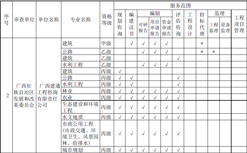 工程咨詢單位資質(zhì)是我國開展工程咨詢業(yè)務所必備的企業(yè)資質(zhì),下設31個專業(yè),涵蓋規(guī)劃咨詢、編制項目建議書、編制項目可行性研究報告/項目申請報告和資金申請報告、評估咨詢、工程設計、招標代理、工程監(jiān)理/設備監(jiān)理、工程項目管理等多個服務范圍。