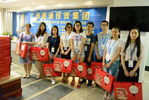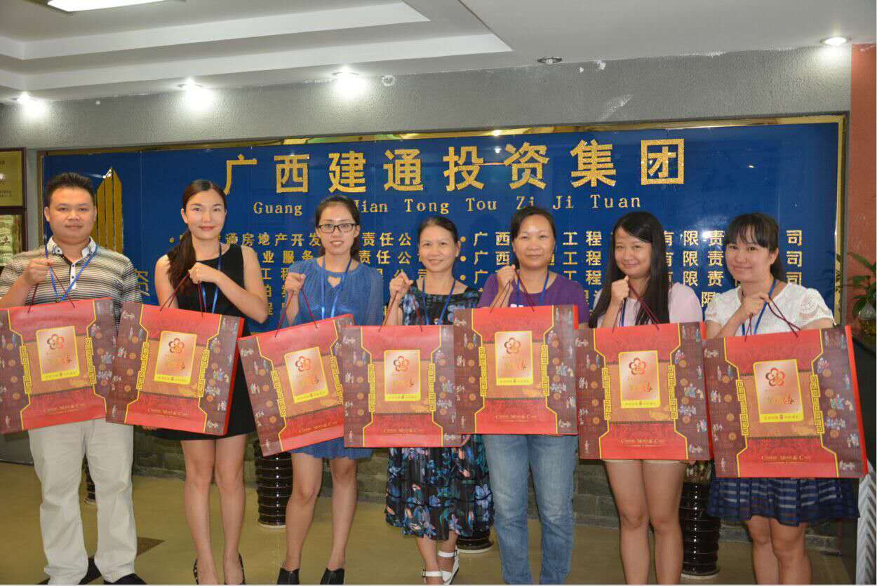 中秋節(jié)前在集團董事會秘書處工作人員的引導下,集團百色總部全體員工喜笑顏開的匯集在建通創(chuàng)業(yè)大廈和建通時代廣場中心,領(lǐng)取集團精心準備好的中秋佳節(jié)禮品。205份中秋月餅在大廳堆積成一座座的山峰,百忙之中趕來的同事在井然有序的領(lǐng)取自己的月餅后,展示出最甜美的笑容和其他同事拍照留影紀念。這不僅僅是一份中秋禮物,更代表著集團對每一位員工表示深切問候和誠摯的感謝,感謝全體員工一年四季堅守在自己的工作崗位上,辛勤的為集團的發(fā)展壯大而努力。
