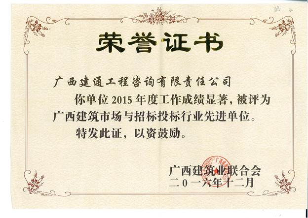 二〇一七年一月六日,廣西建筑業(yè)聯(lián)合會建筑市場與招標投標研究分會2016年年會暨表彰大會在南寧市鳳凰大廈隆重舉行,我集團旗下子公司廣西建通工程咨詢有限責任公司作為理事會員單位及2015年度廣西建筑市場與招標投標行業(yè)先進單位獲得者受邀參加了此次會議,我集團副總裁謝乃鵬出席了本次會議并作為獲獎單位代表接受了表彰和榮譽。