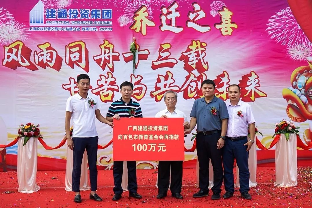 建通投資集團(tuán)百色總部喬遷慶典上集團(tuán)向百色市教育基金會(huì)再度捐款100萬元