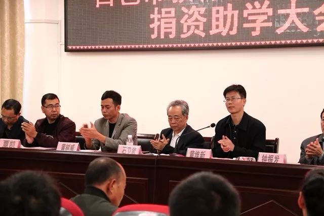 與會(huì)領(lǐng)導(dǎo)、嘉賓為捐資助學(xué)大會(huì)的圓滿閉幕鼓掌