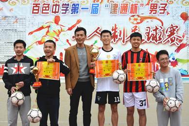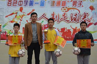 “感謝建通投資集團(tuán)捐資贊助百色中學(xué)開(kāi)展足球聯(lián)賽,通過(guò)比賽,同學(xué)把團(tuán)結(jié)協(xié)作、頑強(qiáng)拼搏、勇攀高峰的競(jìng)技精神轉(zhuǎn)化為強(qiáng)大的學(xué)習(xí)動(dòng)力,達(dá)到了預(yù)期目的!”這是2017年12月26日16時(shí)30分,百色中學(xué)黃振剛副校長(zhǎng)在首屆“建通杯”校園足球聯(lián)賽閉幕致辭時(shí)說(shuō)出的一番肺腑之言。建通投資集團(tuán)副董事長(zhǎng)黃樹(shù)威應(yīng)邀出席閉幕式并為獲獎(jiǎng)班級(jí)頒獎(jiǎng)。