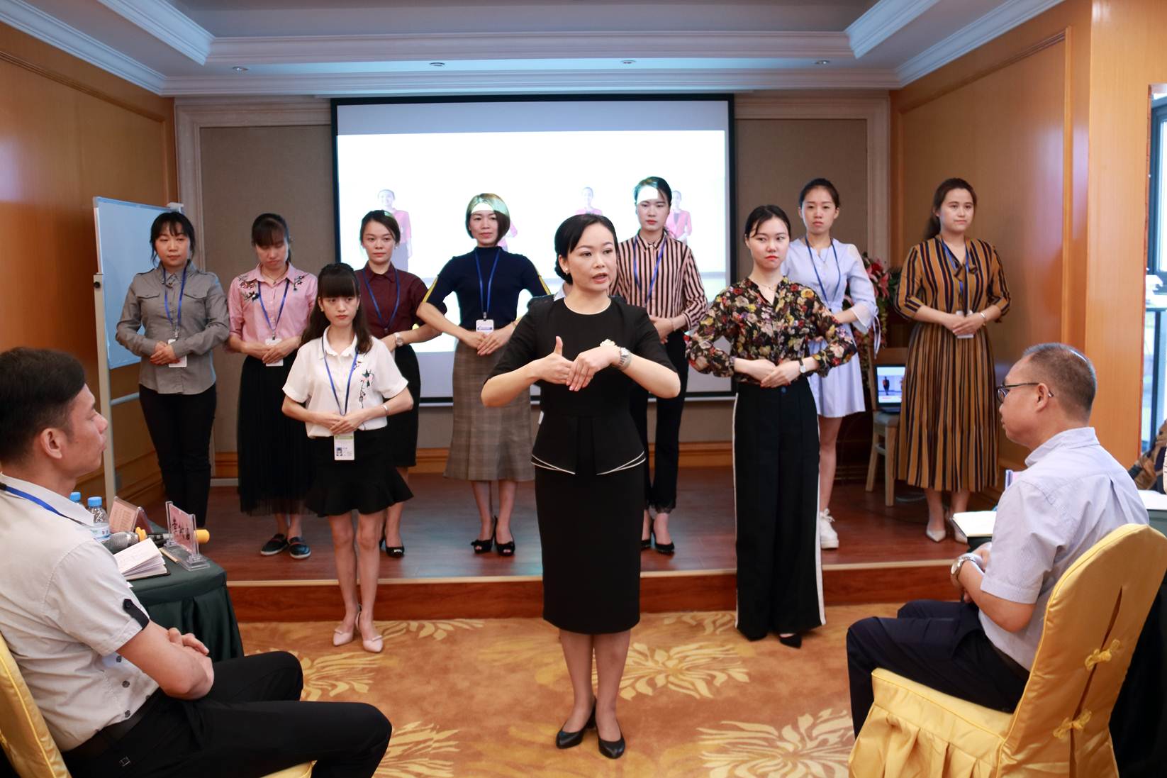 為了達到更好的培訓效果,青羽老師通過現(xiàn)場互動及現(xiàn)場示范的形式調(diào)動氣氛,寓教于樂不僅增強了參訓人員的參與性與積極性,而且使現(xiàn)場人員加深了對商務禮儀知識的理解。