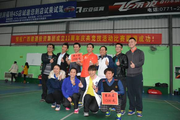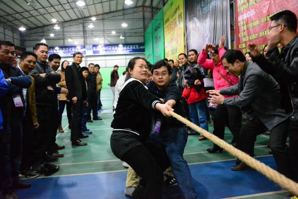 為熱烈慶祝集團(tuán)成立十一周年,積極促進(jìn)集團(tuán)內(nèi)部溝通交流,增進(jìn)集團(tuán)員工友誼,展現(xiàn)集團(tuán)員工個(gè)人及團(tuán)隊(duì)風(fēng)采,培養(yǎng)員工的集體榮譽(yù)感和責(zé)任心。當(dāng)日晚19時(shí)許,集團(tuán)2014年度年會(huì)競(jìng)技活動(dòng)比賽在大型羽毛球館火熱舉行!本次競(jìng)技活動(dòng)比賽的內(nèi)容有拔河比賽和羽毛球比賽,首先參加拔河比賽的隊(duì)伍分別是集團(tuán)百色總部一隊(duì)、百色總部二隊(duì)、集團(tuán)南寧總部隊(duì)、集團(tuán)直屬分公司隊(duì),四支隊(duì)伍分別抽簽后依次展開(kāi)了激烈的角逐。其次參加羽毛球比賽的隊(duì)伍分別是集團(tuán)百色總部羽毛球隊(duì)和南寧總部羽毛球隊(duì),共有28名選手參與。比賽采用七場(chǎng)四勝混合團(tuán)體雙打?qū)怪疲瑲v經(jīng)3個(gè)多小時(shí)猛烈對(duì)決,雙方隊(duì)伍均展現(xiàn)出了建通人團(tuán)結(jié)拼搏、奮發(fā)進(jìn)取、爭(zhēng)創(chuàng)佳績(jī)的體育精神和人文精神!集團(tuán)2014年度年會(huì)競(jìng)技活動(dòng)比賽的舉辦取得圓滿成功!