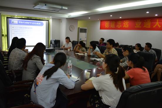 圖為檢測公司總經(jīng)理陸虹任在講授檢測業(yè)務(wù)知識
